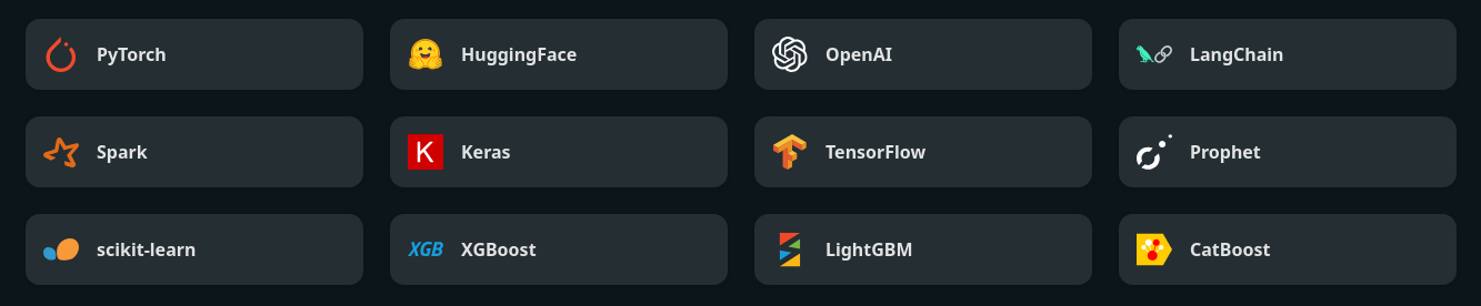 MLFlow conoce la mayoría de librerías: Scikit-learn, Keras, PyTorch, XGBoost, …