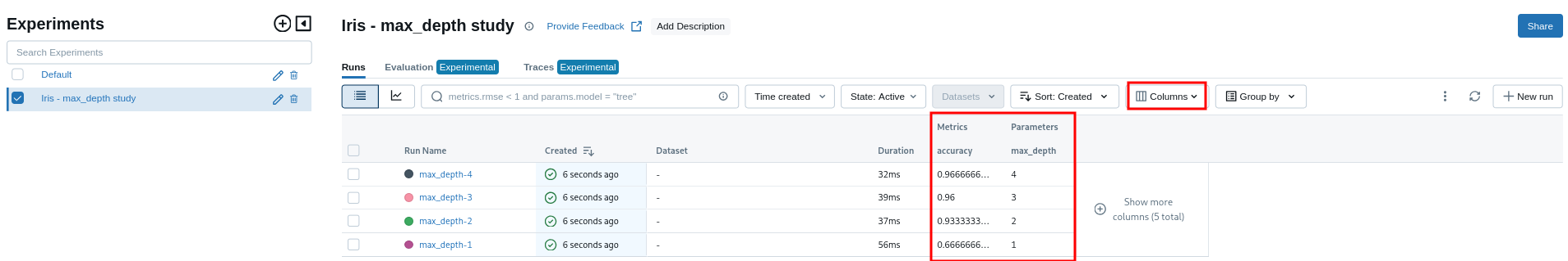 with mlflow.start_run(run_name=f"max_depth-{max_depth}"):